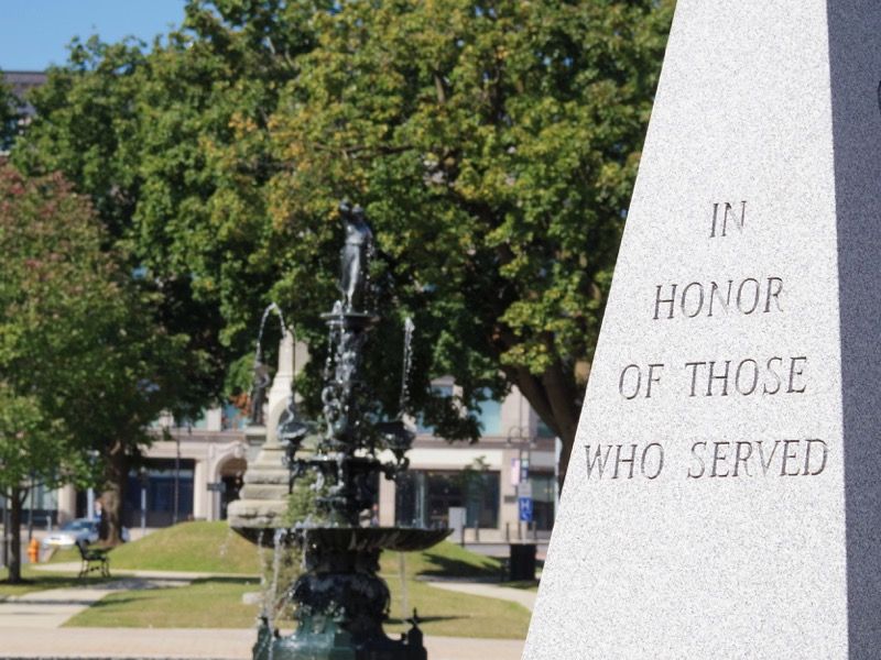 At the center of Public Square lies the island, which was originally the village green. The park is most noted for the central cast iron fountain, erected in 1869 to mark the incorporation of Watertown as a city. At the Western end stands the Soldiers’ and Sailors’ Monument, topped by victory, marking the end of the Civil War.